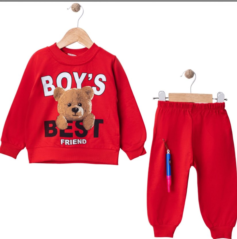 Kırmızı Erkek Bebek Uzun Kollu Sweatshirt ve Pantolon Takımı