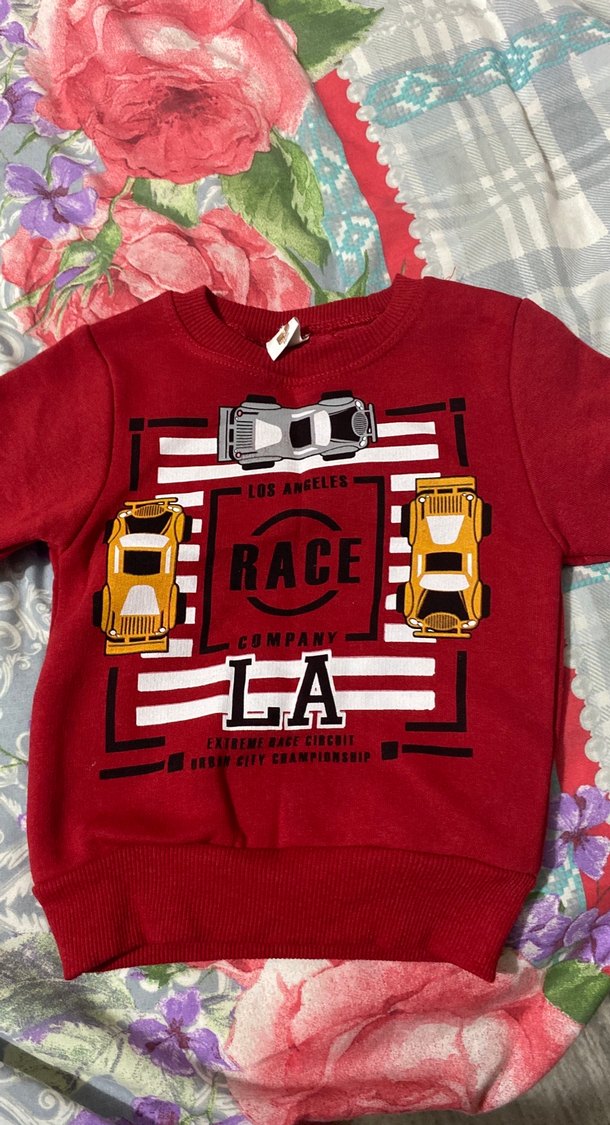 Kırmızı renkte, uzun kollu, bisiklet yaka ve dar kesim erkek çocuk sweatshirtü. Üzerinde renkli yarış arabası baskısı ve 'RACE' yazısı bulunur. Sentetik kumaştan üretilmiştir.