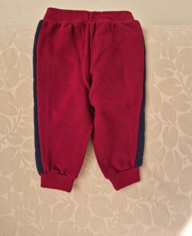Yumuşak ve sıcak kumaştan, yan şeritli ve lastikli manşetli kırmızı erkek çocuk eşofman altı. Günlük sokak stili için uygun.