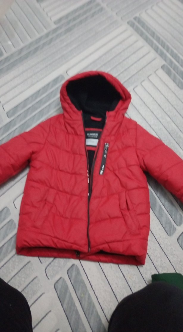 Kırmızı renkli, fermuarlı ve yakası kesik detaylı erkek çocuk montu. Yumuşak ve sıcak kumaştan, sokak stiline uygun.