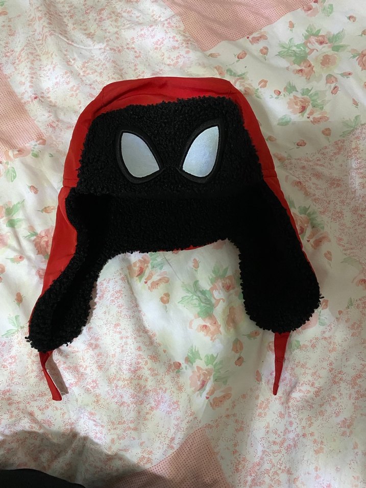 Kırmızı örgü dış yüzey ve siyah yumuşak iç astarlı, cesur goth tarzı erkek çocuk beresi. Gözleri andıran nakış detayları bulunur.