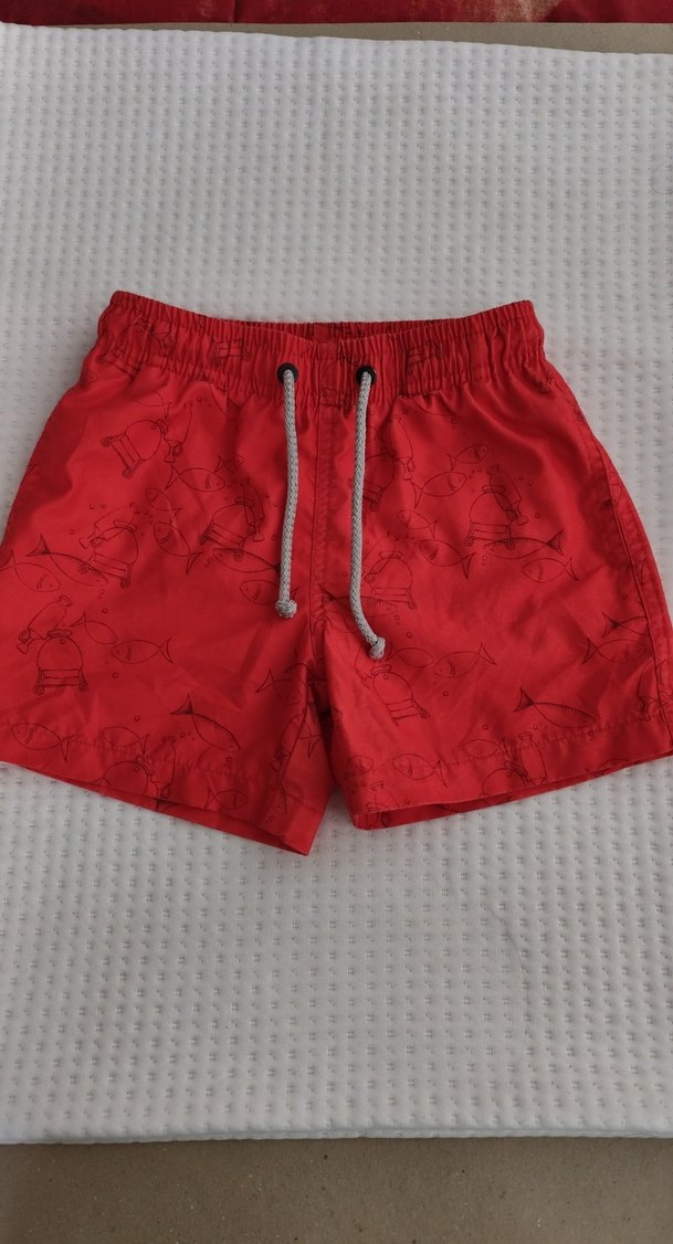 hızlıca kuruyor kumaşı çok iyi 5 yasa kadar rahatça olur Kırmızı renkli, elastik bel ve bağcıklı erkek çocuk mayo şortu, üzerinde ince balık çizimleri bulunur.