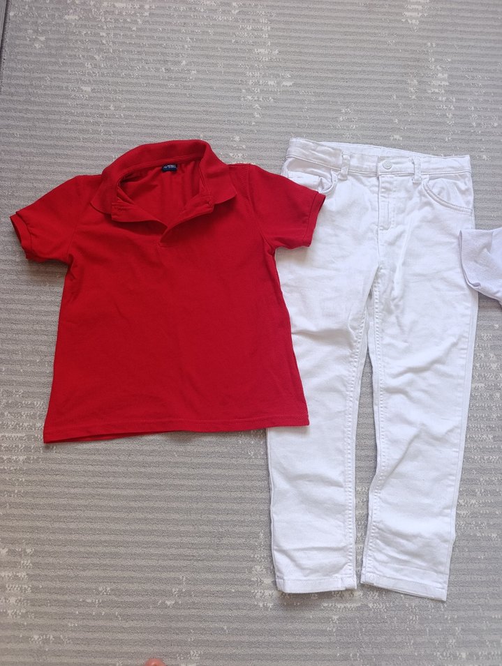 Pamuk kumaştan, yakalı ve kısa kollu, kırmızı renkte, sade ve şık erkek çocuk polo tişört. üç ürün birden