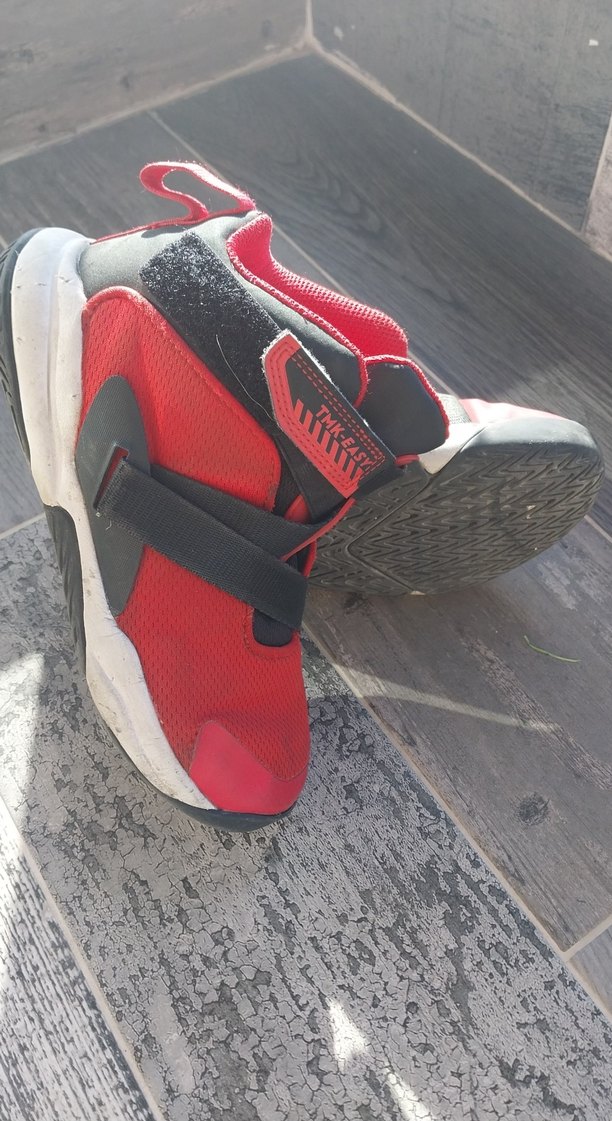 Kırmızı renkli, bilekli bantlı erkek çocuk spor ayakkabısıdır. Tabaninda asinma yok,ön kisminda yirtik tamir edilmisti,resimde görünüyor.Etiket rahatsiz ettigi icin kesilmis,33-34 numaraya uygun.Kücük geldigi icin satista