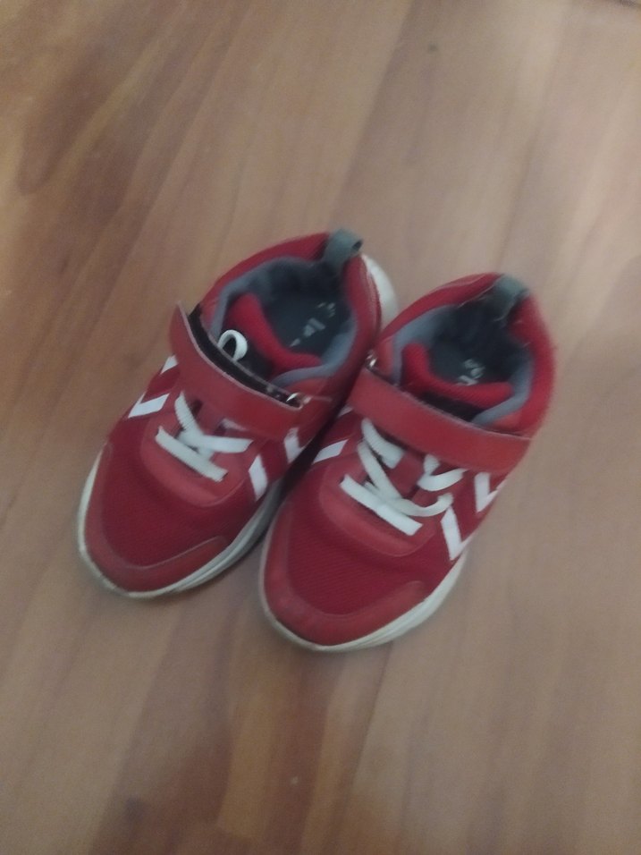 Velcro bantlı, kırmızı erkek çocuk spor ayakkabısı. Kauçuk tabanlı, desen içermeyen renkli ve rahat sokak stili.