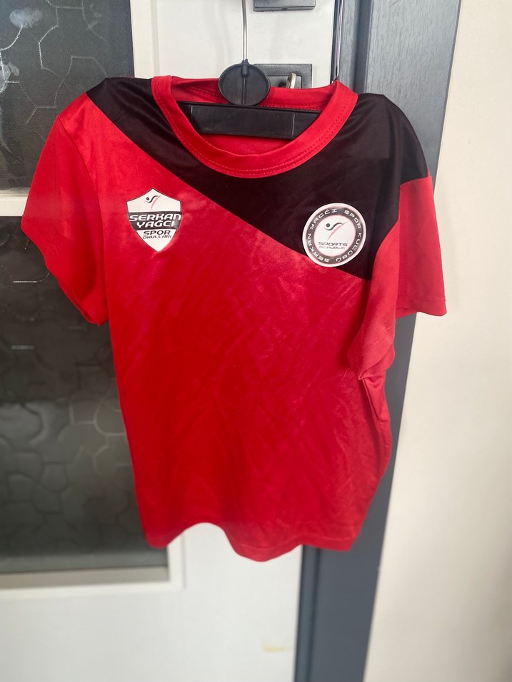 Kısa kollu, bisiklet yaka kırmızı erkek spor tişörtü. Fitted kesim ve velcro detaylı, yumuşak ve sıcak kumaştan üretilmiştir. ♂️. İki kol arası 38 cm. Boy 48 cm. Erkek çocuk