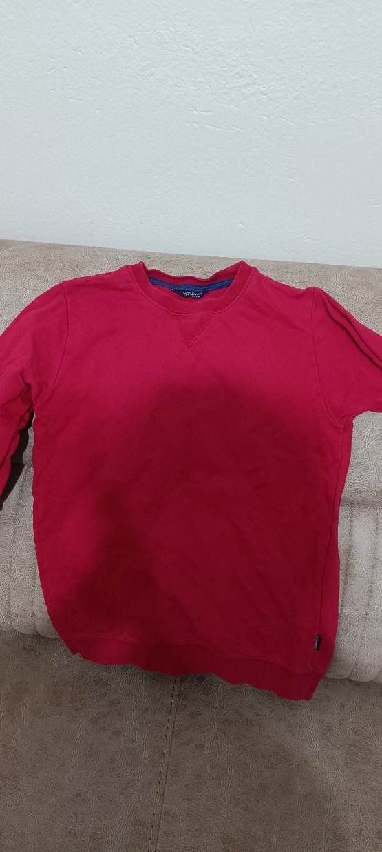 Kırmızı renkli, yuvarlak yakalı ve uzun kollu erkek çocuk sweatshirtü. Rahat kesimli ve yumuşak, sıcak kumaştan üretilmiştir. Sokak stiline uygun sade tasarım.