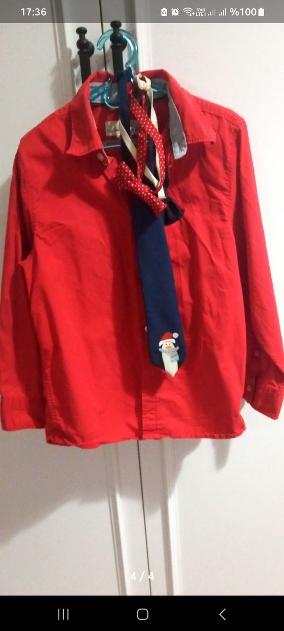 Kırmızı, notched lapel yakalı ve tokalı detaylı, yumuşak ve sıcak hissettiren kumaştan yapılmış erkek çocuk gömleği. Uzun kollu ve sade renklidir.