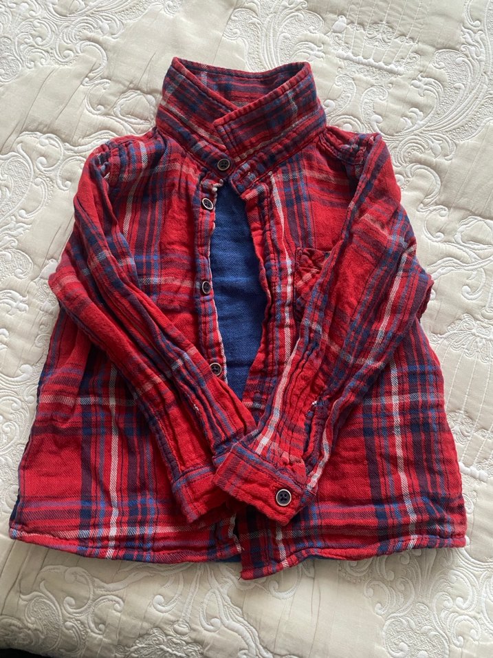 Keten kumaştan, düğmeli ve uzun kollu kırmızı erkek çocuk gömleği. Yaka tipi klasik ve vücuda oturan kesime sahip. Normcore tarz için uygun.