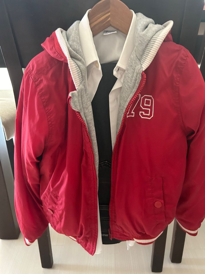 Düğmeli, kırmızı erkek çocuk ceketi, gri ve kırmızı çift taraflı 5-6-7 yaş erkek çocuk için uygundur