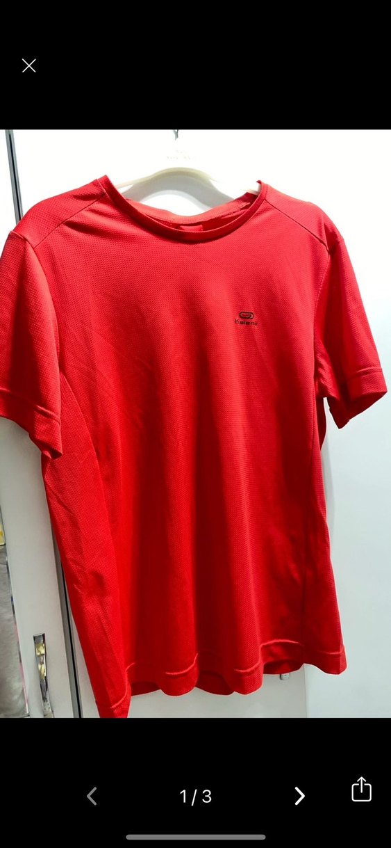 Kırmızı, kısa kollu ve bisiklet yaka erkek tişörtü, rahat sentetik kumaştan üretilmiştir. Spor ve günlük kullanıma uygundur