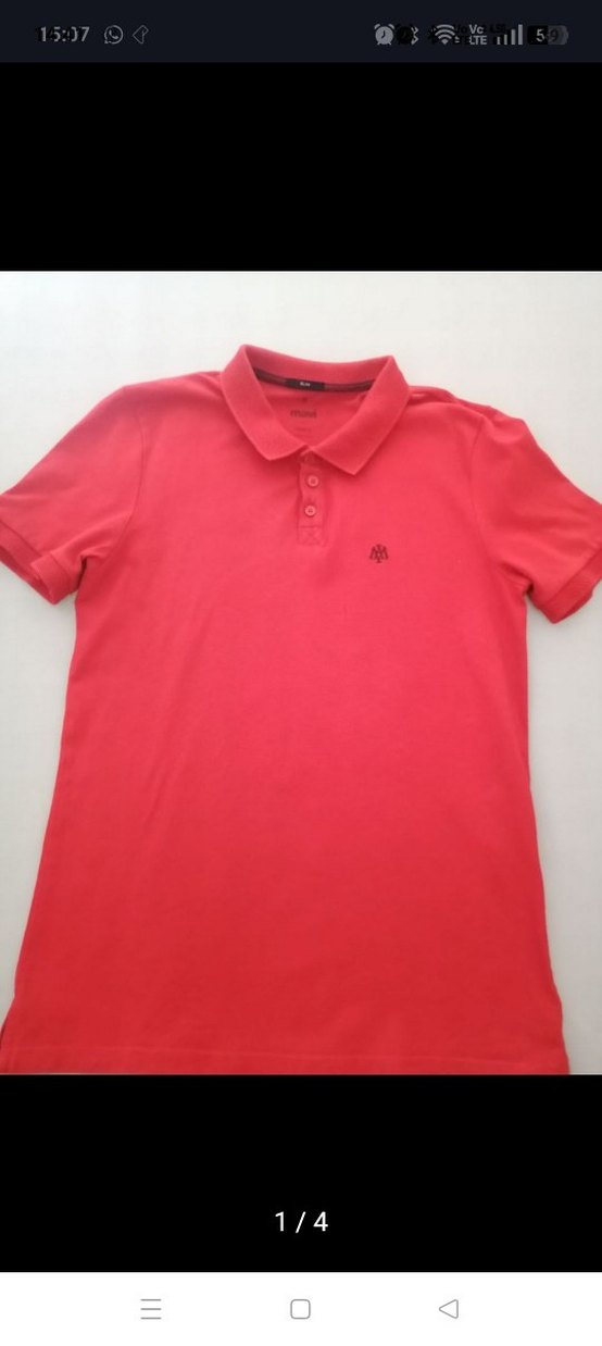 Düz kırmızı renkte, kısa kollu, yakalı ve vücuda oturan erkek polo tişörtü. Sentetik kumaştan üretilmiş, günlük ve sokak stiline uygun rahat bir parça.