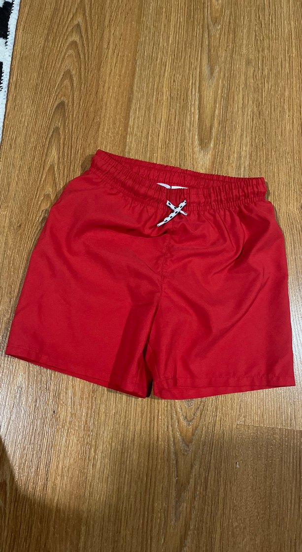 Rahat kesimli, canlı kırmızı renkte erkek mini deniz şortu. Plajda veya sokak modasında kolay şıklık sağlar. 7 yaş