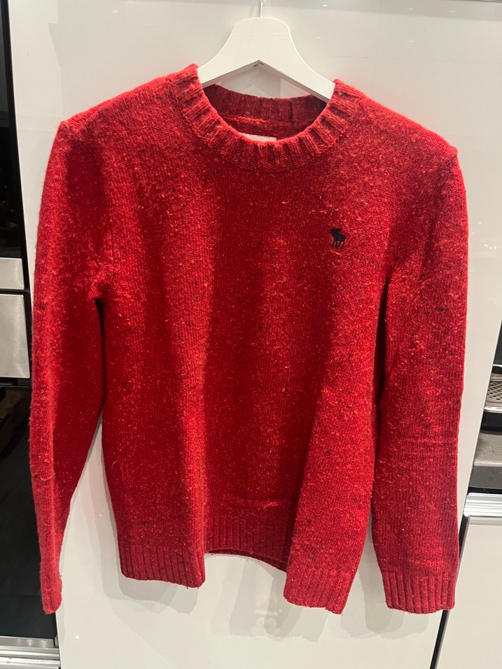 Parlak kırmızı, örgü yün, yuvarlak yaka ve uzun kollu, normal boyda, fit kesim erkek kazak. Günlük rahat kullanım için uygundur. Sokak stiline uygun, desensiz ve konforlu.