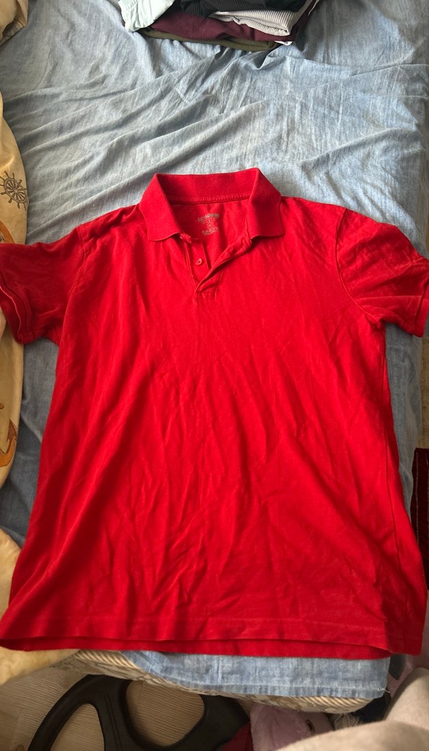 Kırmızı erkek polo tişört, yakalı ve kısa kollu, vücuda oturan kesime sahip. Parlak sentetik kumaştan üretilmiş, sade ve rahat günlük sokak stili için uygundur.