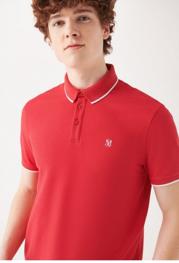 Kırmızı renkli, düğmeli yakalı, kısa kollu erkek polo tişört. Rahat kalıp ve yumuşak sentetik kumaştan üretilmiştir. Günlük kullanıma uygundur.