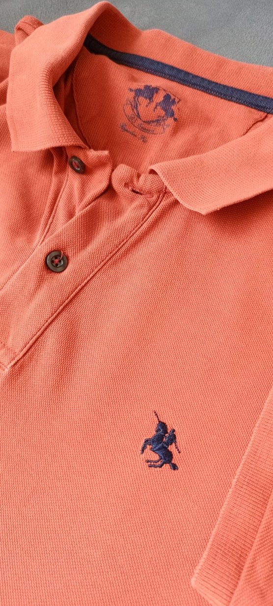polo yakası ve baskılı deseniyle kırmızı, regular kesim erkek polo tişört. pamuk kumaştan, kısa kollu, günlük ve sokak tarzı için uygun. orjinal polo