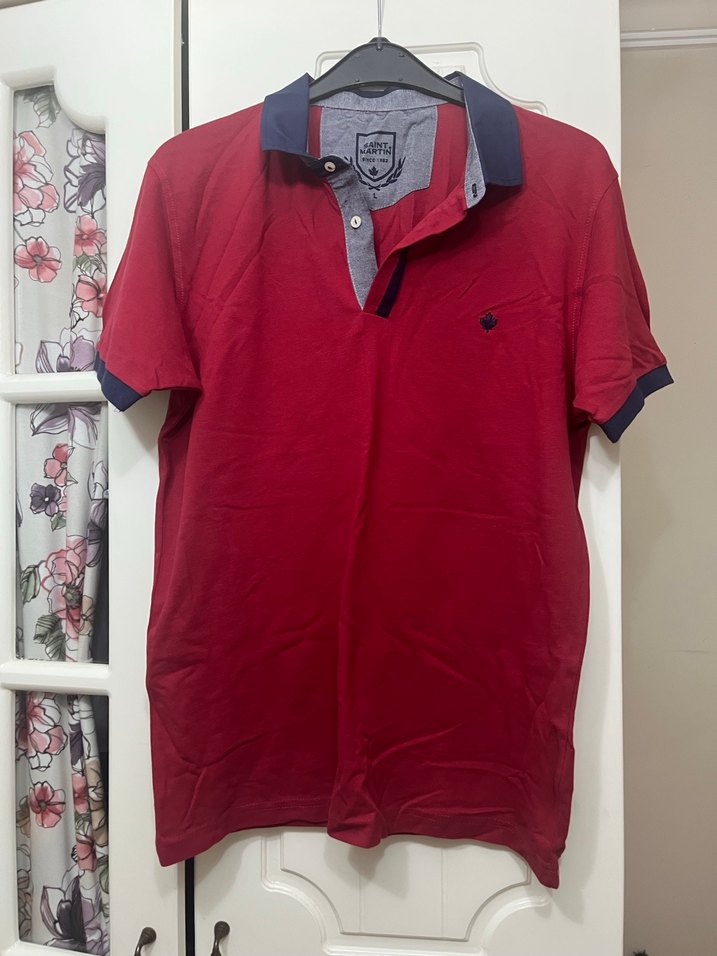 Düğmeli polo yaka, kısa kollu, fitted kesime sahip kırmızı erkek tişört. Günlük ve sokak stiline uygun.