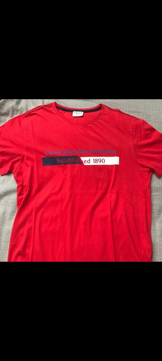 Kırmızı renkli, kısa kollu, yuvarlak yaka pamuk tişört. United States Polo Association baskılı, regular fit ve günlük spor tarzına uygun.