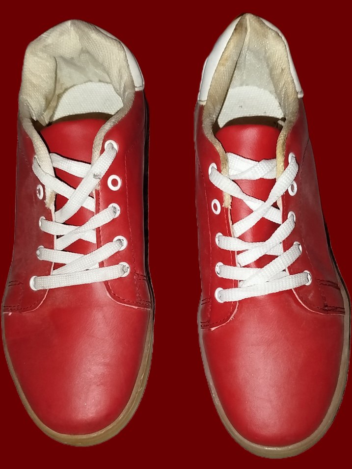 Beyaz bağcıklı kırmızı erkek spor ayakkabısı, minimalist sokak stiliyle rahat ve gündelik.