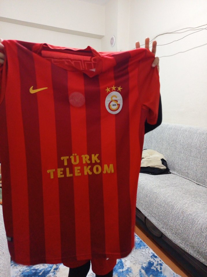 Kısa kollu, yuvarlak yakalı, parlak kırmızı çizgili erkek spor forması. Önünde "TÜRK TELEKOM" baskısı ve cırt cırt detayları bulunur. ⚽
