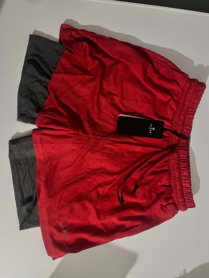 Koyu kırmızı renkte, sentetik kumaştan, cep detaylı, bol kesim kısa erkek spor şort. L beden yazıyor ama S. Olur Sıfır üründür hiç kullanılmadı