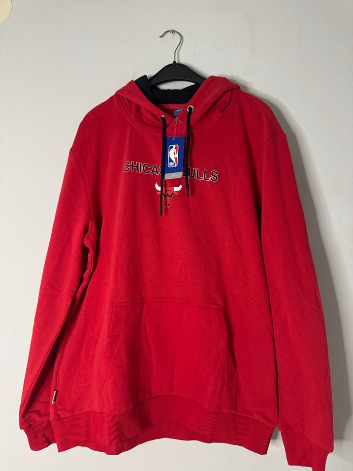 Koyu kırmızı renkte, kapüşonlu, uzun kollu ve bol kesim spor sweatshirt. Önünde Chicago Bulls logo detay bulunur.
