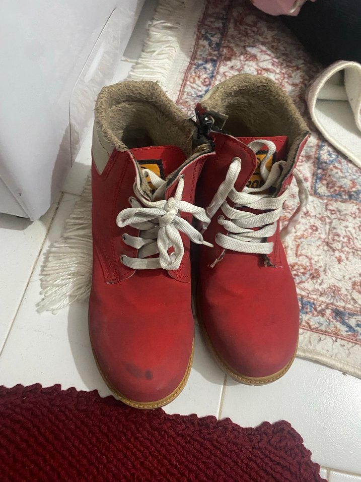 Kırmızı süet erkek botları, tokalı ve renklidir. Trendy casual tarza uygun, desensiz ve rahattır.