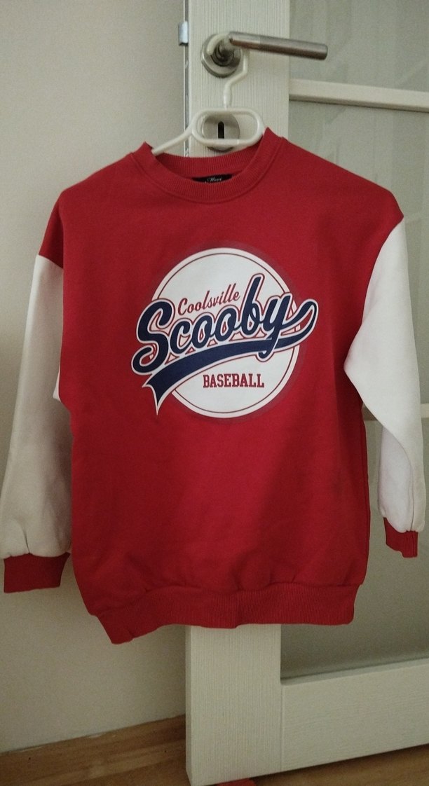 Uzun kollu, yuvarlak yaka, kırmızı-beyaz renkli, baskılı beyzbol temalı rahat kesim çocuk sweatshirtü. Yumuşak ve sıcak kumaştan üretilmiştir. ⚾