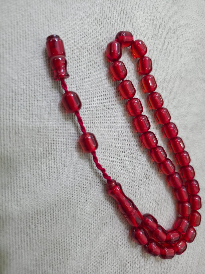 Renkli kırmızı boncuklardan oluşan, sade ve klasik tarzda erkek tesbih.
