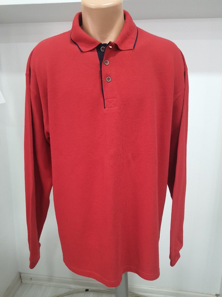 uzun kollu #polo yaka #tişört, düğmeli yakası ve bol kesimiyle dikkat çeker. Yumuşak ve sıcak pamuklu kumaştan üretilmiş, canlı kırmızı renkte günlük sokak stili sunar. koltukaltı en 62 cm. omuz ortadan boy 73 cm.
