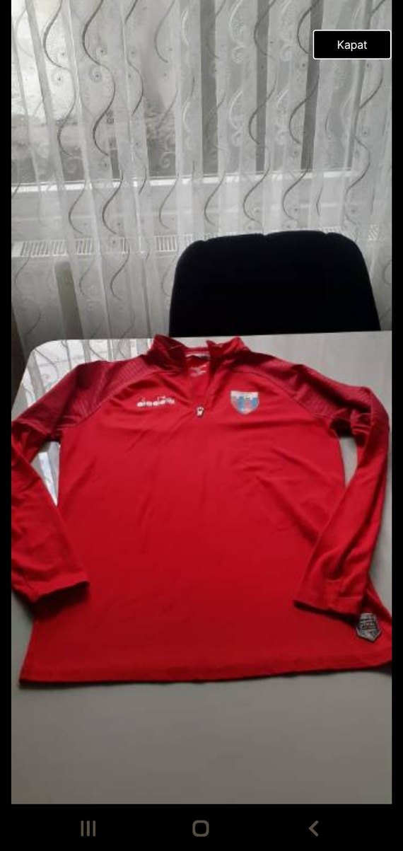 Düğmeli detaylı, uzun kollu, kırmızı renkli, yumuşak ve sıcak kumaştan yapılmış, spor ve günlük kullanıma uygun erkek sweatshirt.