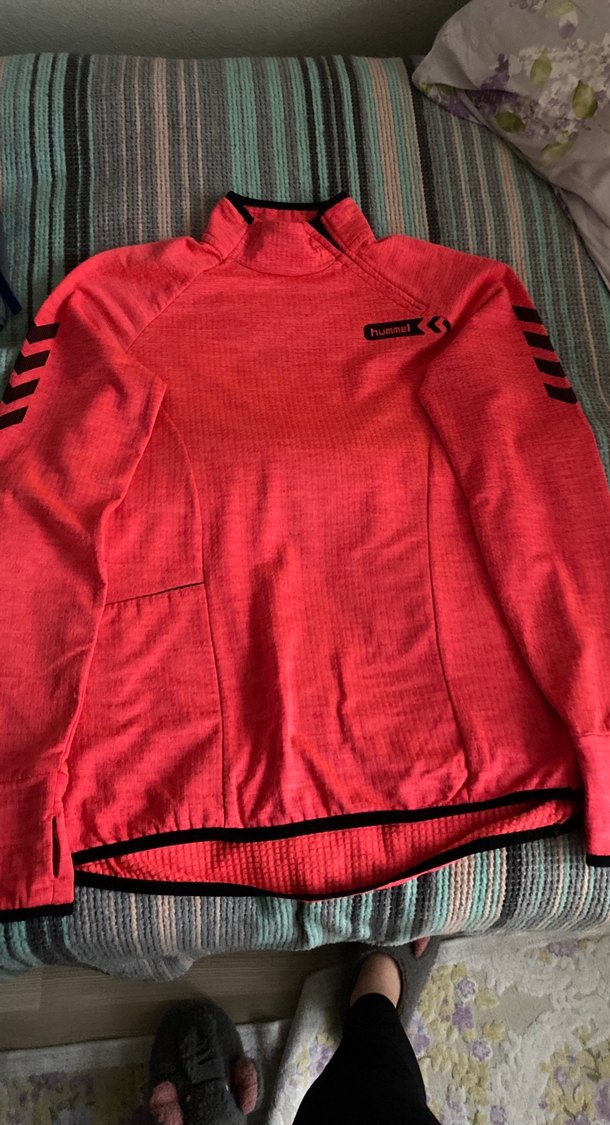 Koyu kırmızı renkte, uzun kollu ve yarım balıkçı yakalı, triko dokulu erkek sweatshirt. Spor ve sokak tarzına uygun, desensiz ve parmak delikli tasarım.