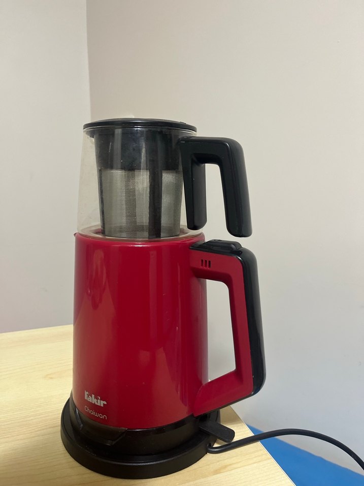 kırmızı renkte Fakir çay makinesi, dahili demliği ve sağlam tutacağı ile kolay kullanım sağlar. Kompakt tasarıma sahiptir.