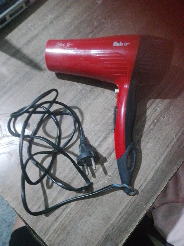 Kırmızı renkli Fakir saç kurutma makinesi, rahat tutuş ve uzun kablo ile kolay kullanım sağlar. Hızlı kurutma için uygundur. ♀️