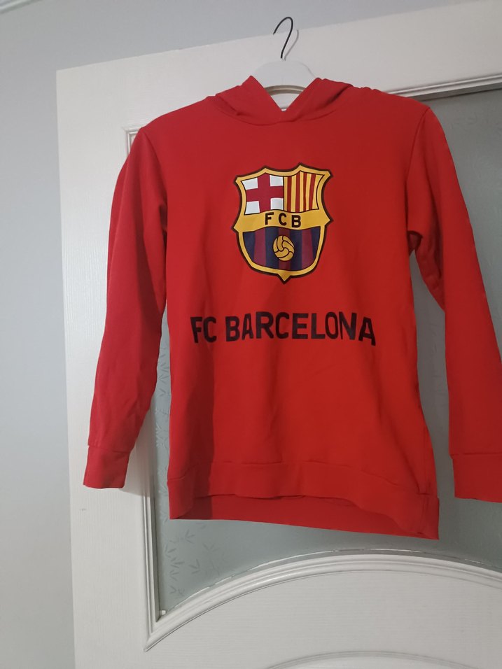 Kırmızı renkte, uzun kollu ve bol kesim FC Barcelona sweatshirt. Takım logosu baskılı, düğmeli ve yumuşak sıcak kumaştan üretilmiştir.