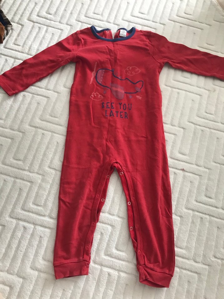 Uzun kollu, yuvarlak yakalı ve fermuarlı bu renkli bebek tulumu, yumuşak ve sıcak kumaştan üretilmiştir. Üzerinde "See You Later" baskısı bulunur.
