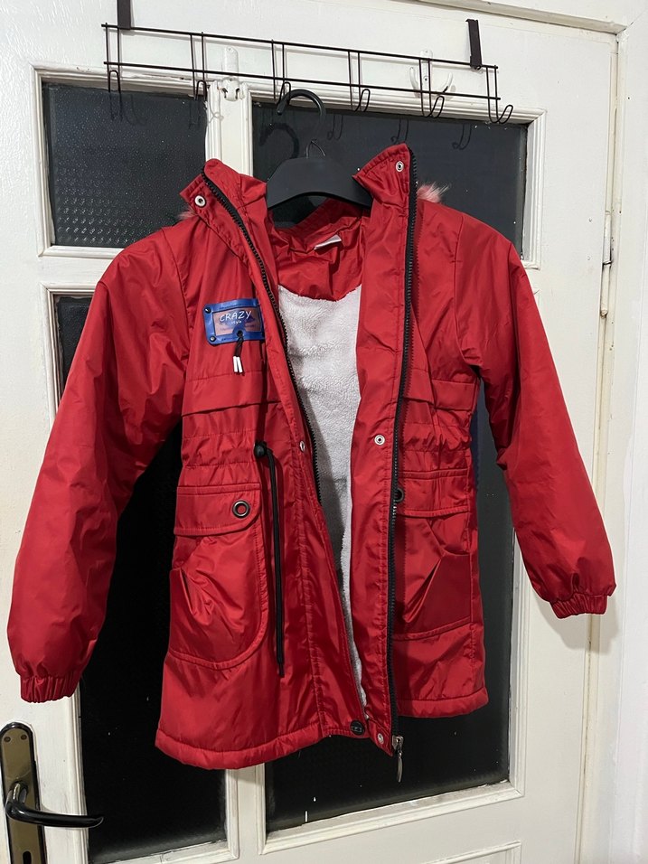 Fermuarlı ve kırmızı renkli, ince kesim montu. İç kısmı yumuşak ve sıcak tutan kürklüdür. Cepleri ve lastikli manşetleri vardır. Fermuarında arıza var sadece onun dışında hiç bir sorunu yok