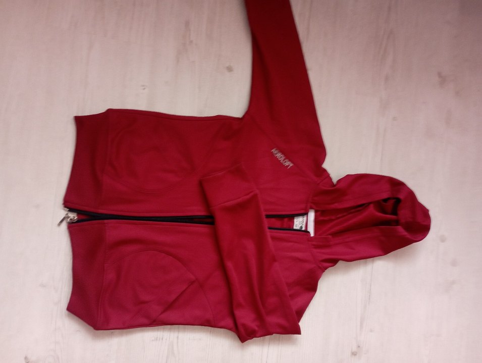Kırmızı renkli, uzun kollu ve yüksek yakalı çocuk spor ceketi. Fermuarlı ve vücuda oturan kesimiyle rahat kullanım sağlar. Düz ve renkli tasarımıyla spor ve günlük kullanıma uygundur.