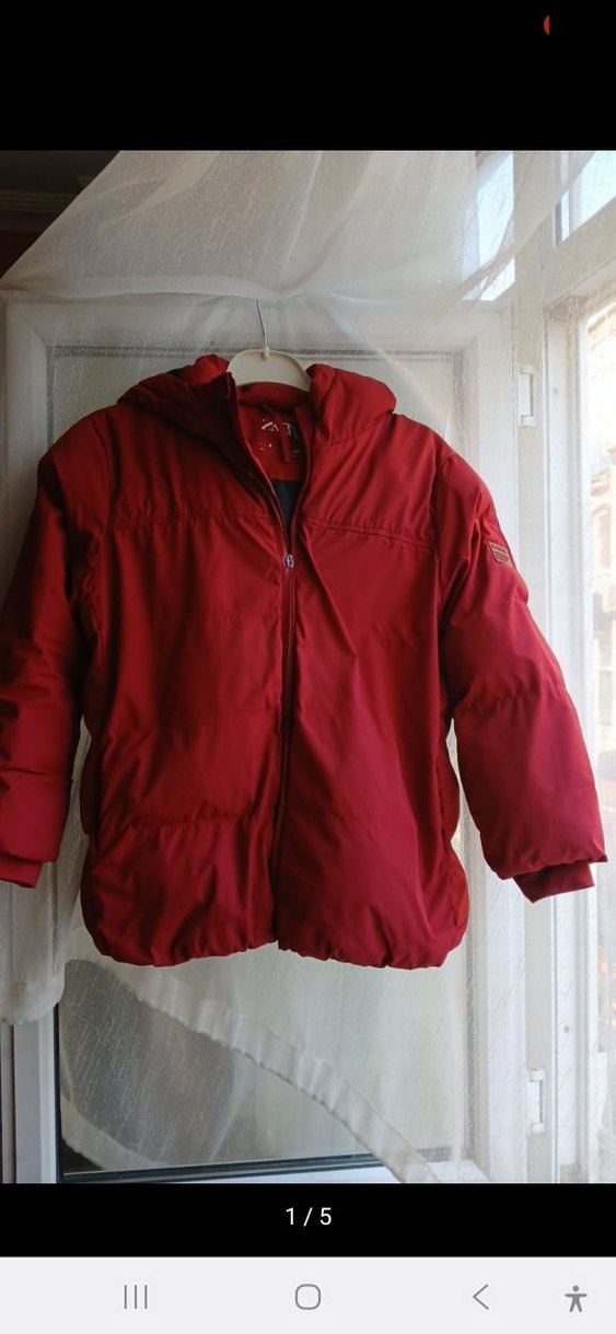 Fermuarlı, kırmızı ve notched lapel yakalı erkek çocuk montu. Sokak tarzına uygun, yumuşak ve sıcak kumaştan yapılmıştır.