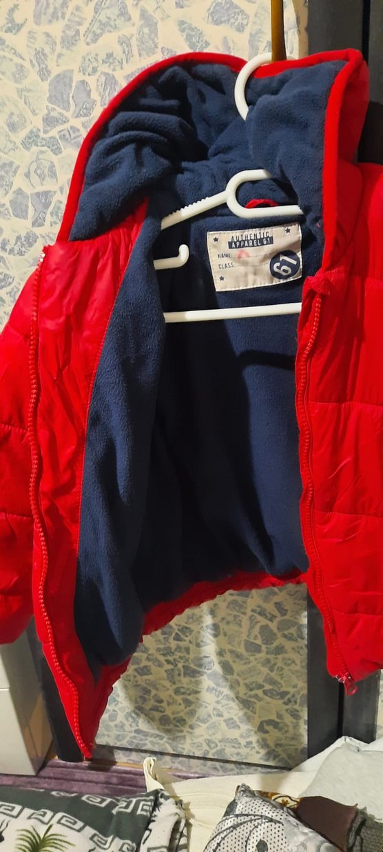 Parlak kırmızı renkte, fermuarlı ve kesimli erkek çocuk montu. Yumuşak iç astarıyla sokak stiline uygun.
