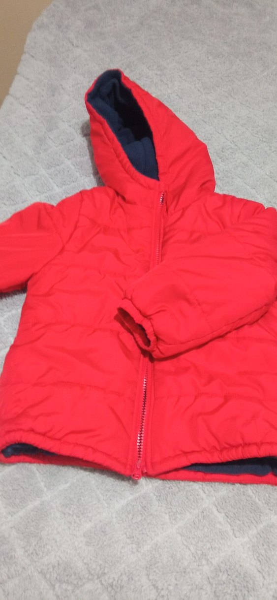 Kırmızı renkli, fermuarlı ve kapüşonlu erkek çocuk montu. Düz ve sokak tarzı, yumuşak ve sıcak kumaştan yapılmıştır. Oturmalı kesime sahiptir.