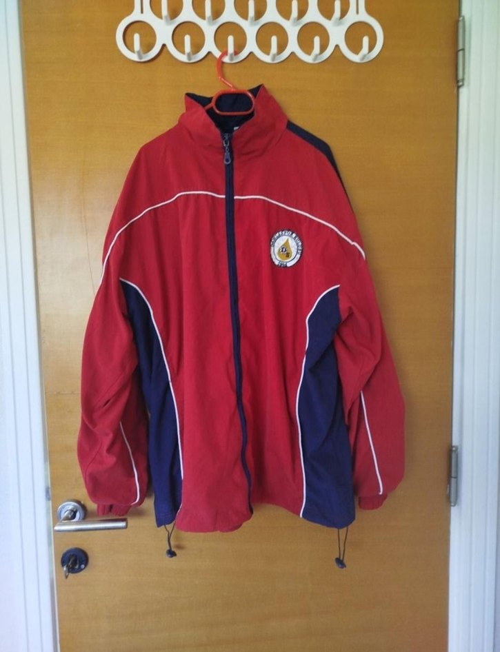 Kırmızı parlak renkte, fermuarlı erkek eşofman üstü Spor ve sokak giyimi için uygundur. Az kullanıldı