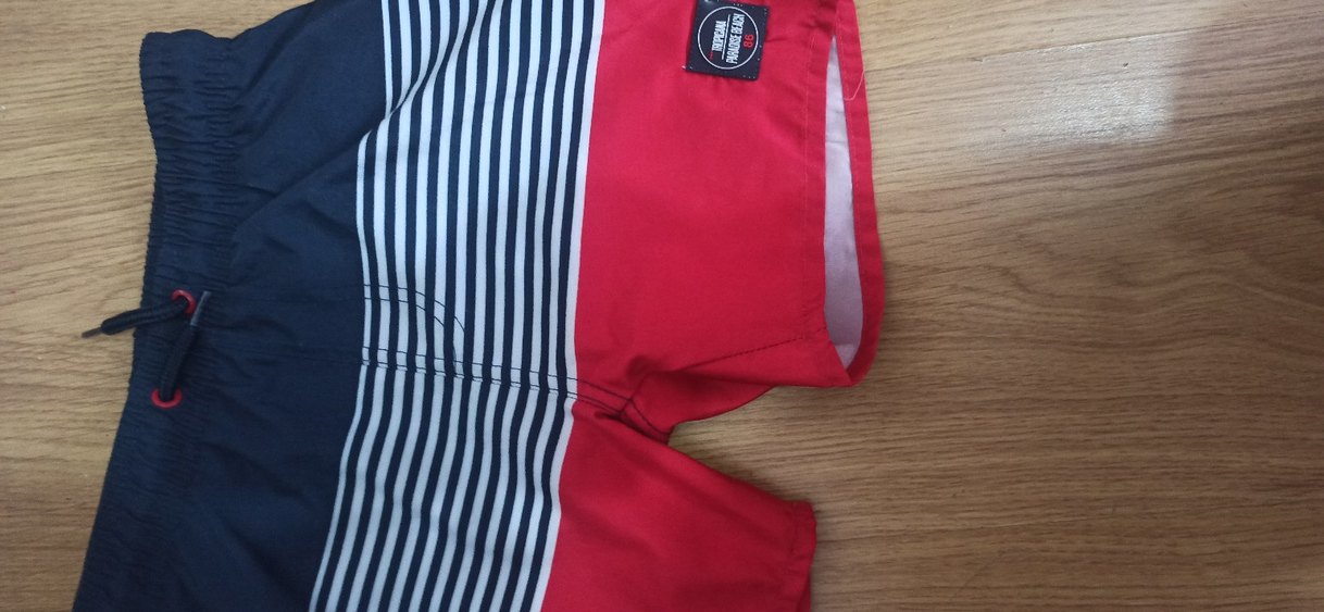 Kırmızı, fermuarlı ve çizgili detaylı erkek midi mayo. Fitted kesim ve rahat kullanıma uygun, plajda şık bir görünüm sunar. ️