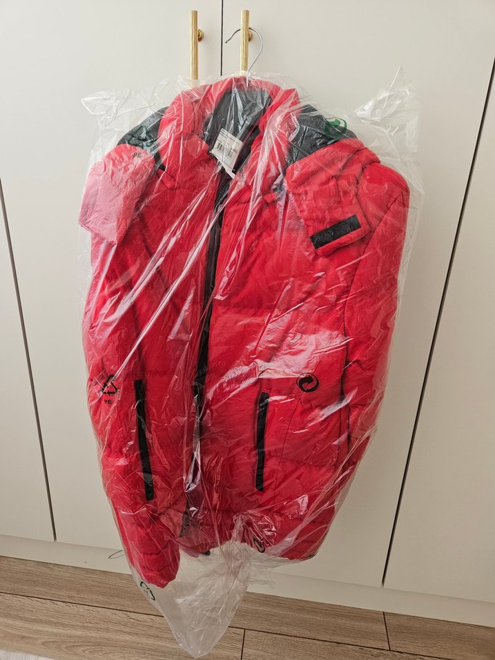 kadınlar da oversize mont olarak giyebilirkırmızı renkli, fermuarlı ve uzun kollu erkek mont.