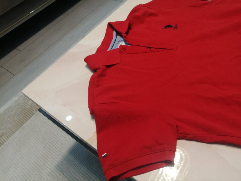 Kırmızı, fermuarlı detaylı, sentetik kumaştan yapılmış, kısa kollu, yakalı, baskılı ve renkli desenli erkek polo tişörtü. Trend sokak giyimine uygun.Defo yoktur