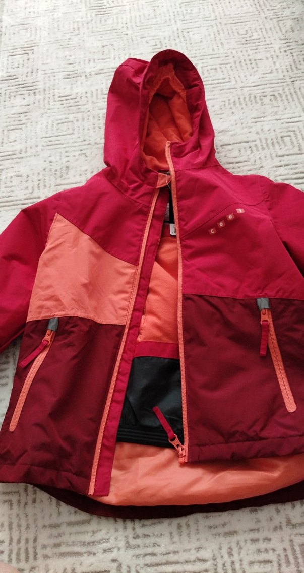 Kız ve erkek kullanır koyu kırmızı renkte, fermuarlı cepli ve kesimli yakalı ince mont. Yumuşak ve sıcak kumaştan, sokak stili için uygun. yağmurluk gibi 6-8 yaş erkek ve kıza uygun
