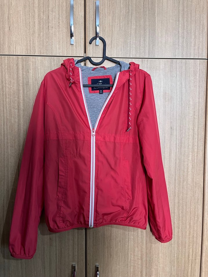 Kırmızı, fermuarlı, uzun kollu, ince kesim kadın rüzgarlık. Az kullanıldı. Sorunu yoktur.