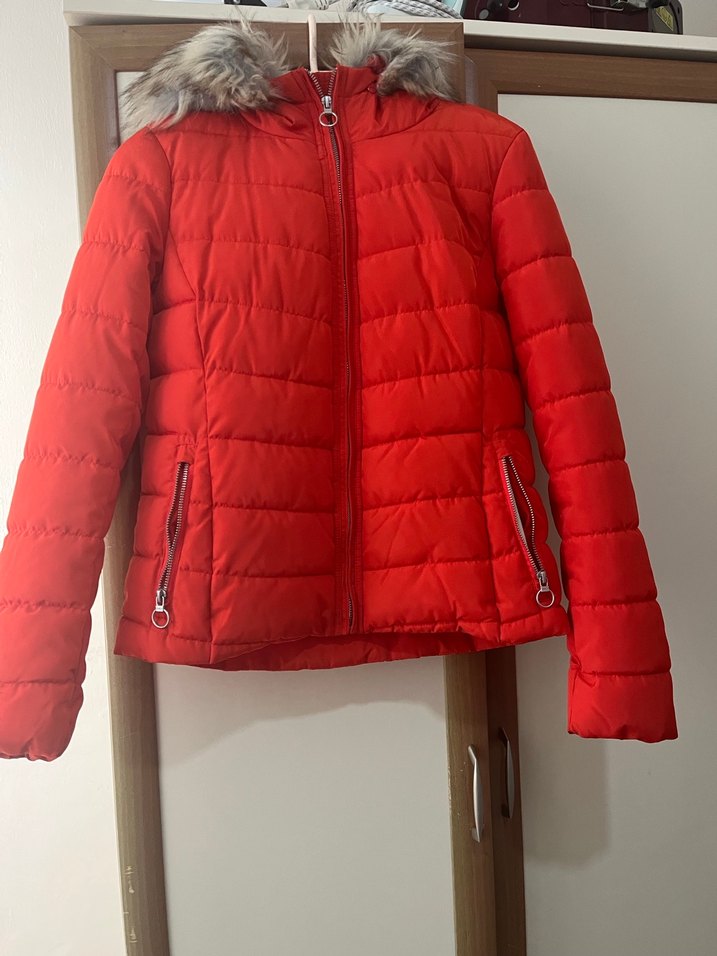 Parlak kırmızı renkli, fermuarlı cepleri ve kesimiyle şık bir kadın montu Yumuşak ve sıcak kumaştan üretilmiştir, dış mekanda kullanıma uygundur. Şapkası çıkarılıp takılıyor bir yerinde sorun yok ❄️