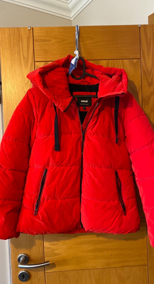 Mavi marka S beden. Kırmızı kışlık ceket, fermuarlı. Normal midi boy, fitted kesim. Parlak yumuşak kumaşıyla sıcak tutar. ❄️ Defolu kısmı fotoğrafta gösterilmiştir: sol fermuarinin iç kısmında yirtik.